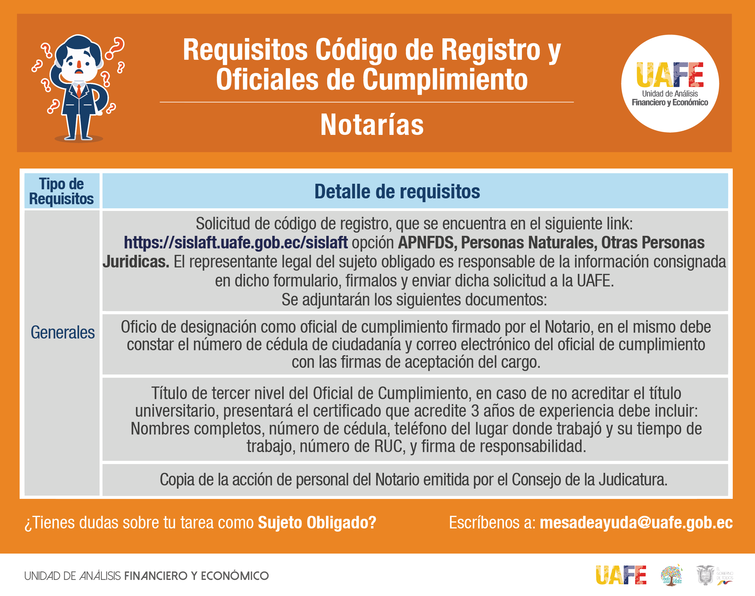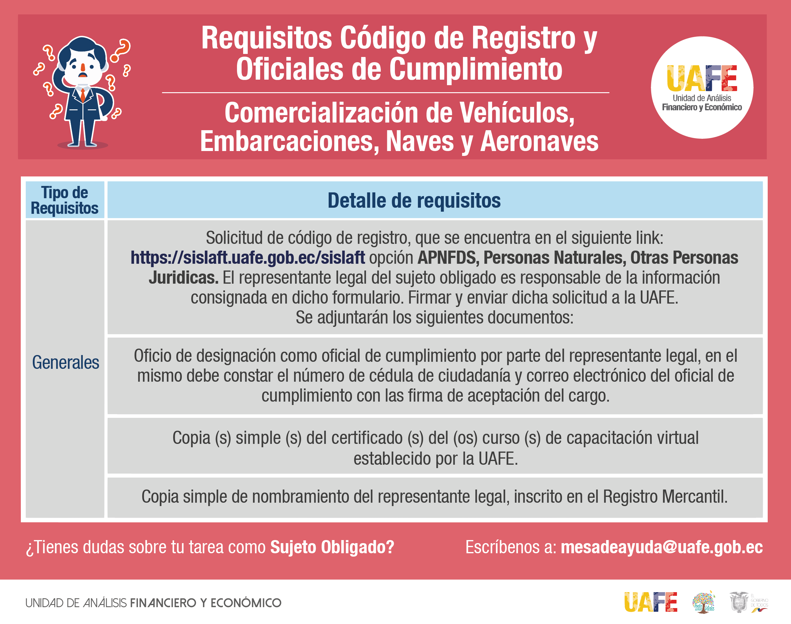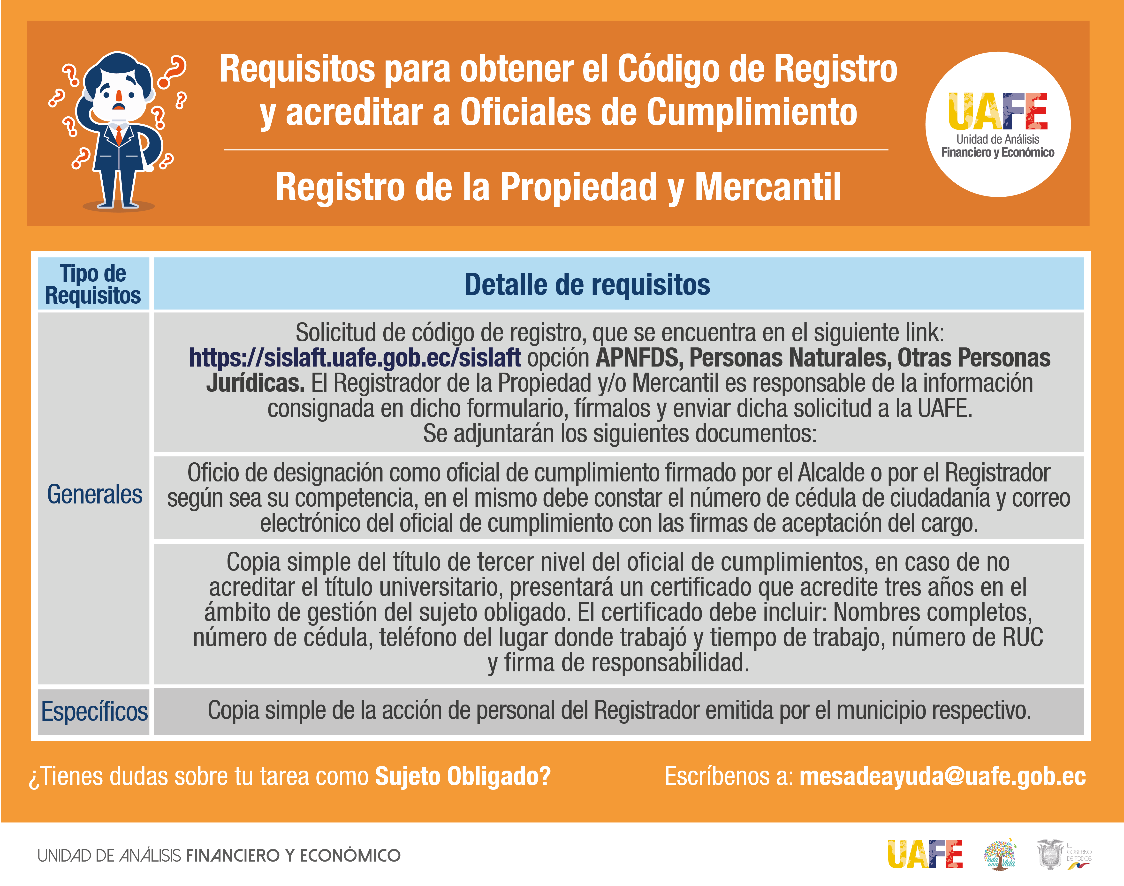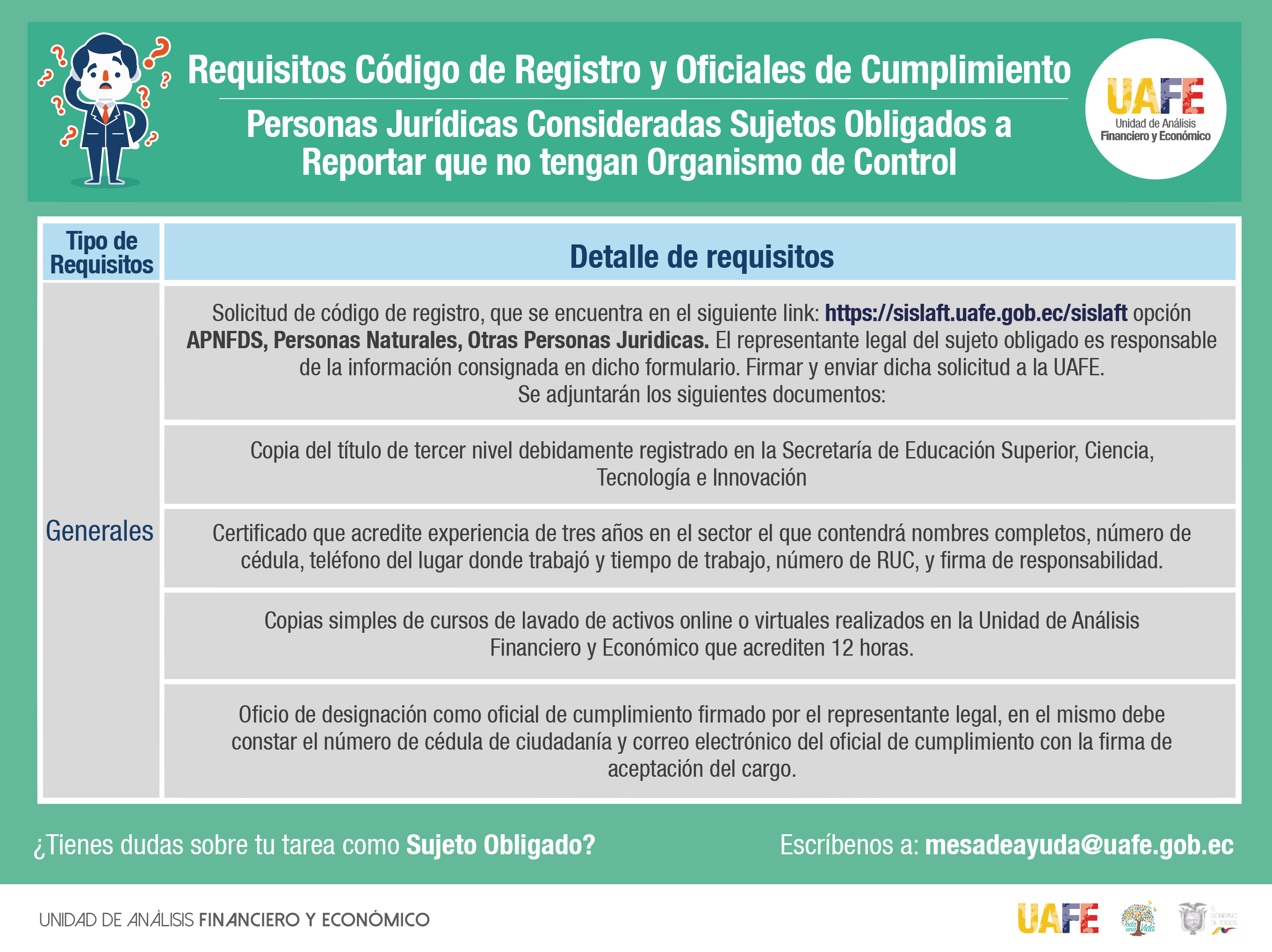 Requisitos para obtener el Código de Registro y registrar a Oficial de Cumplimiento Titular y Suplente: