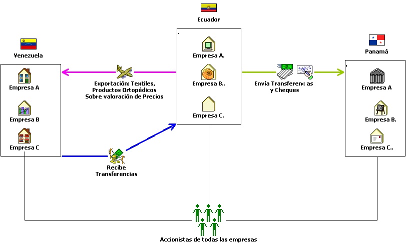 Las empresas de Ecuador realizar transferencias y envían cheques a empresas de Panamá cuyos accionistas son los mismos de las empresas de Venezuela y Ecuador.