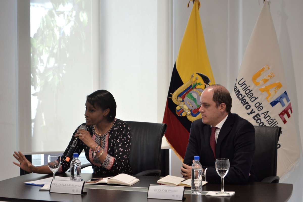 Quito, 25 de septiembre de 2018.- Diana Salazar, directora de la Unidad de Análisis Financiero y Económico (UAFE), mantuvo una reunión de trabajo con los representantes de la Asociación de Bancos Privados del Ecuador (ASOBANCA), a fin de delinear una alianza estrategica de prevención e identificación de casos de lavado de activos y financiamiento de delitos.